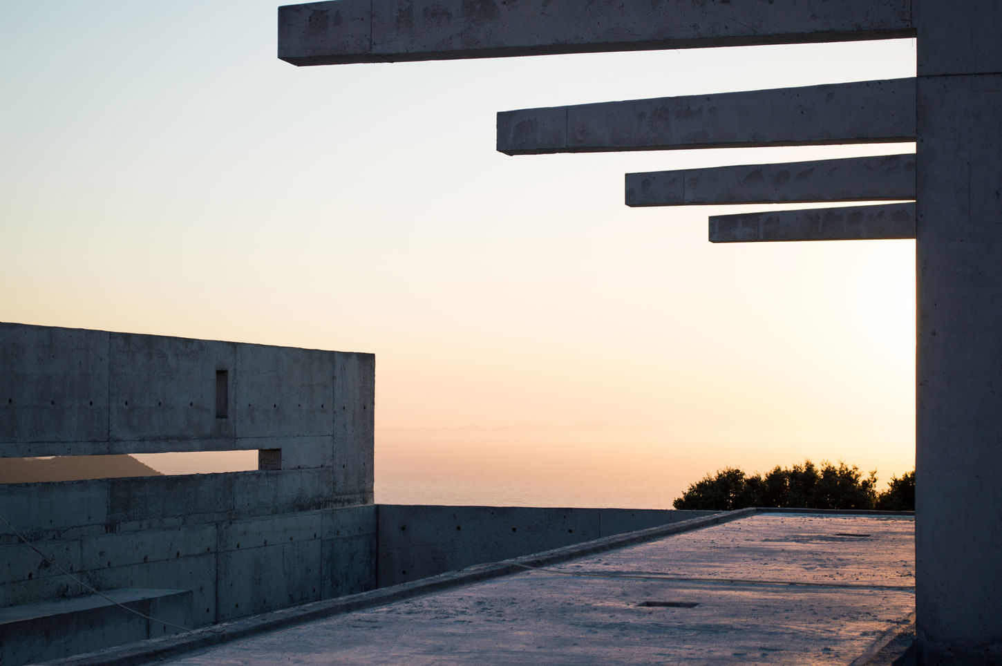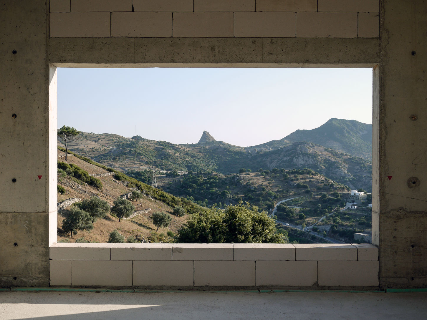 This residence consists of four buildings situated on the saddle-shaped ridge of a hill overlooking the Aegean Sea, with Greek islands on the horizon. An environment of extremes, the site is breathtakingly lush and beautiful during the spring while completely dry, arid, and ruggedly sublime at summer's end. The climate also follows this fluctuation in extremes — the site routinely reaches over 100 degrees Fahrenheit during the summer, while dipping into mid-30 degree weather during the winter, with wind speeds all year gusting near and up to 40 miles per hour.