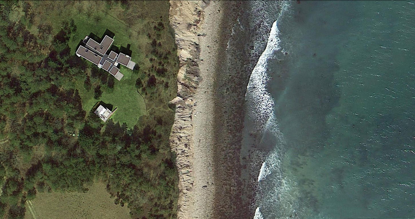 Nestled into the native shrubs on the Martha’s Vineyard coastline, East House’s site-cast concrete façade welcomes the tendrils of coastal vines, while providing a robust face to New England’s coastal weather. The ten-inch thick concrete walls are cast in the form of a collection of concrete boxes, relieved with sustainably harvested Spanish Cedar window frames, and oriented to achieve both subtle and dramatic responses to the landscape.